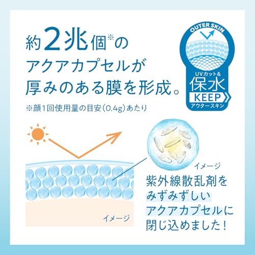 SPF50の高い紫外線カット力に加え、「水肌記憶ウォータリーホールド」と命名されている通り、水のような透明感を保ちながら肌を包み込む独自技術を搭載。