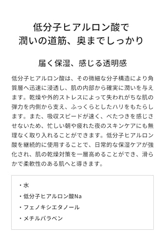 - メリット:高浸透の低分子ヒアルロン酸が肌奥まで潤いを届け、弾力アップに貢献します。