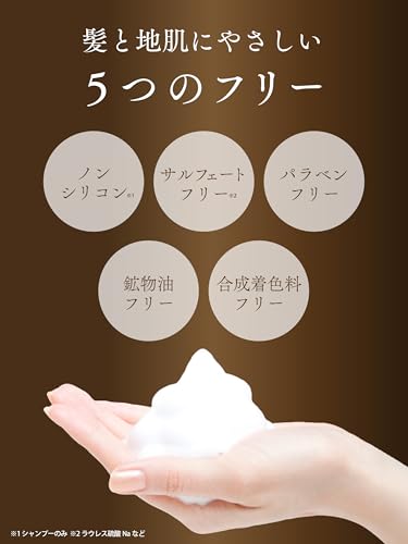 きめ細やかで濃密な泡が頭皮と髪を優しく洗浄しつつ、しっとりまとまる仕上がりが特徴です。