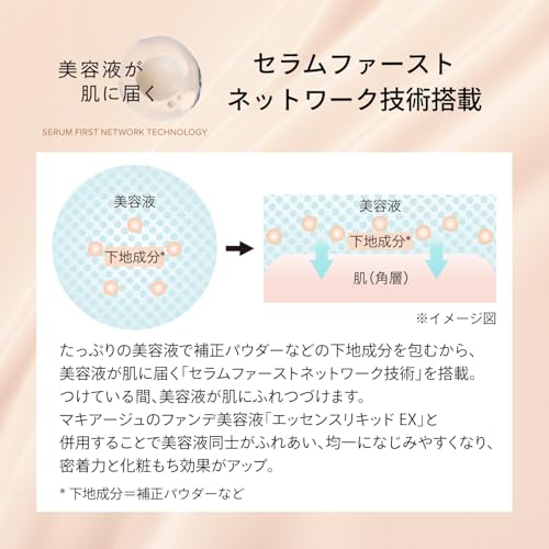 また、同シリーズの「エッセンスリキッド EX」との併用で、美容液成分同士が相乗効果を生み出し、化粧持ちや密着力がさらにアップ。