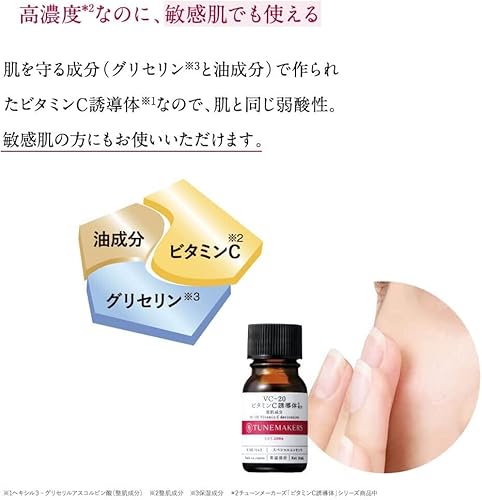「チューンメーカーズ 原液 VC-20」は、日本製のビタミンC誘導体美容液で、濃度20%のビタミンC誘導体を配合しています。