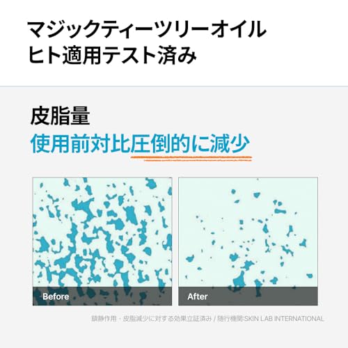 5倍高濃縮されたティーツリーオイルにより、肌の油分バランスを迅速に整え、敏感肌でも安心して使える処方が魅力です。