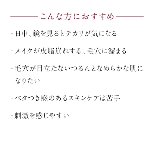 - メリット:毛穴の引き締め効果、肌のキメ改善、潤いキープ、敏感肌にも使いやすい処方