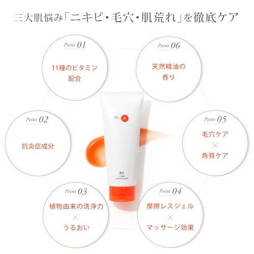 ドクターケイ 薬用Cクリアクレンジングジェルは、肌荒れやニキビ、毛穴のケアを目的に開発された薬用クレンジングジェルであり、特にビタミンC誘導体を中心とした11種のビタミン成分の配合が特徴です。