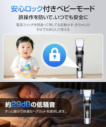 子供の繊細な肌や赤ちゃんの頭をカットする際にも、R型安全刃が肌へのダメージを抑え、低騒音設計で静かな環境を保てる点も大きな魅力です。
