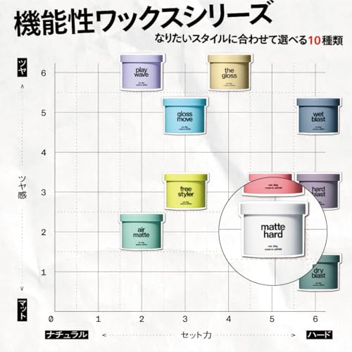 このマットハードは、その中でも特にキープ力に優れ、一日中スタイルを崩さず保つことができます。