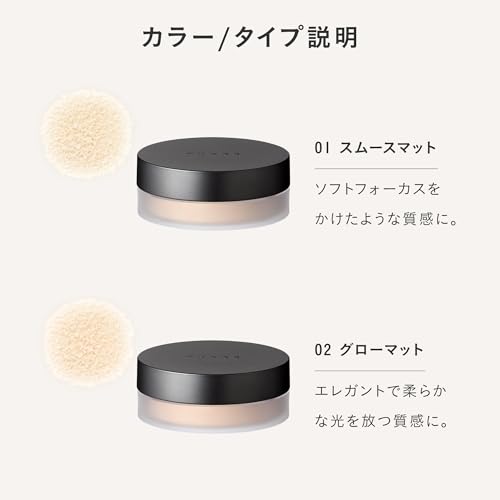 このルースパウダーは、微細で軽く滑らかなパウダーが肌に密着し、抑えめのマット感と上品なグロー感を演出します。